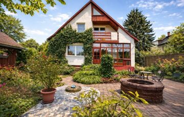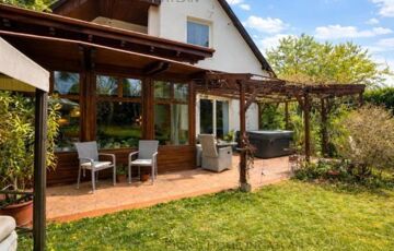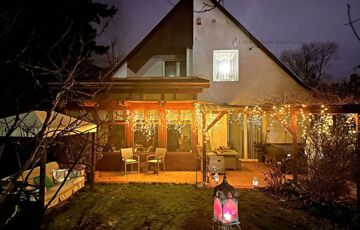 <p>This impressive property is for sale in a newly built family home neighborhood with panoramic views of Nagykevély and Ezüsthegy. The exterior of the house is unique with green vegetation, wooden beams and terraces creating a warm, friendly, Mediterranean atmosphere. The 775 m² garden is planted with ornamental plants, shrubs and flowers, and is illuminated by atmospheric lights in the late evening hours. The relaxation area features a barbecue, a fire pit, a swing bed, and a garden dining area. The paved terrace is the perfect place for summer evenings and gatherings with friends and family.</p>