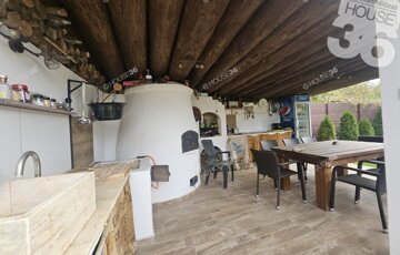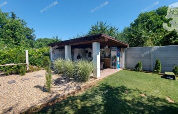-burkolt 26 m2-es terasz, 12 m2-es melléképület + sütögető, bográcsozó, épített kemence