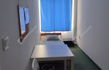 Első emelet: 34 db fél szoba, melyek egy ágyasak, 9 db nagy szoba, szobánként 2 ágyasak. 2 db konyha, összesen 12 wc, 11 db tusoló fülke, és 3 db piszoár áll a lakók szolgálatában.