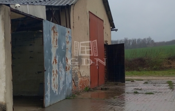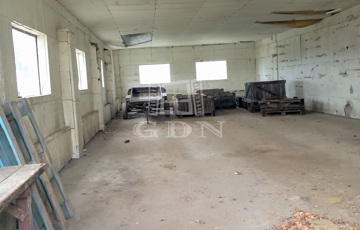 - 1 db régi építésű vasbeton tartóoszlopokon fém szerkezetű, hullámpala tetővel, téglával falazva, dupla vasajtókkal, melyeken nagy méretű munkagépek is könnyedén be tudnak állni ( 17,60 x 12,10 m)