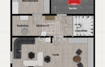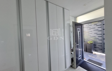 A kiskapu és a nagykapu távirányítású. A garázs mellett, kerten belüli parkolás is megoldott.
