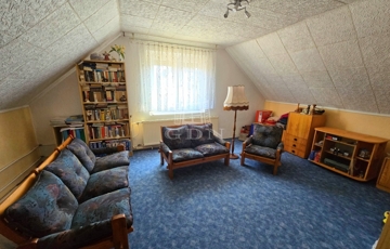 Az 1986-os évben épült blokk tégla szerkezetű két szintes, szuterénnel rendelkező ingatlan első szintjén található 1 konyha, nappali, 2 szoba, fürdőszoba, wc, előszoba, valamint egy közlekedő. Tovább haladva a 2. szinten kialakításra került 2 szoba, illetve egy fürdőszoba+wc. Az ingatlan legalsó szintjén a szuterénben található a kazánház, egy műhely, valamin egy közel 30 m2-es garázs mely két autónak is kényelmes helyet biztosít. A garázs elektromos ajtóval van felszerelve, illetve a kazánházból feljuthatunk a lakás első szintjére, valamint a hátsó udvarra is kijuthatunk.