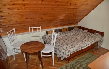 Emelet: 1 nagy és 2 kisebb szoba lambériázott mennyezettel, az egyik szobából fürdő kialakítható.