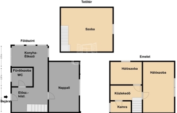 3 szint (2 lakószint + beépített tetőtér)