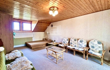 - A tetőtérben 4 hálószoba, 2 zuhanyzós fürdőszoba, 1 konyha és közlekedő folyosó található.
