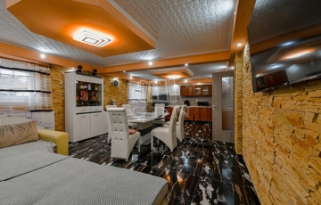 A lakás melegét, vegyes tüzeléses kazán biztosítja, amely gázzal, illetve fával is fűthető. A meleg vizet villanybojler adja.