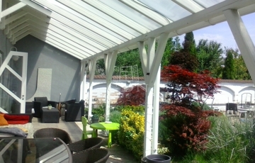 SZAUNA, KONDISZOBA, KANDALLÓ, PADLÓFŰTÉS (egész házban), KLÍMA és GARDRÓB (a szobákban), 2 fürdőszoba, 42m2-es fedett terasz.
