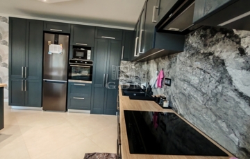 Modern, nagyméretű, világos konyha, mely tökéletes helyszíne a közös étkezéseknek és családi pillanatoknak