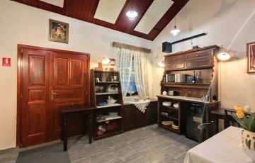 Az impozáns ingatlan tágas fogadótérrel rendelkezik, jelenleg nappali-étkezőként funkcionál ez a hatalmas tér, mely az otthon lelke is egyben. Emellett egy jól felszerelt konyha segíti a mindennapokat.