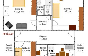 (+ a tetőtér is beépíthető, ami jelenleg nincs beépítve, ami kb. 50nm)