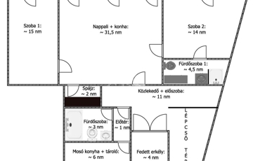 Az épület hasznos alapterülete 183 nm melyben található: