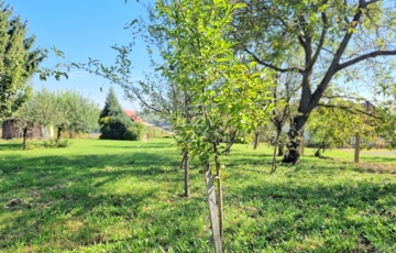 A gondozott terület többféle termő gyümölcsfának ad otthont: