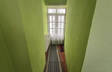 -A folyosószakasz három ajtóval az udvar felé, valamint egy bejárattal az utcafrontról kapcsolódik a külső térhez.