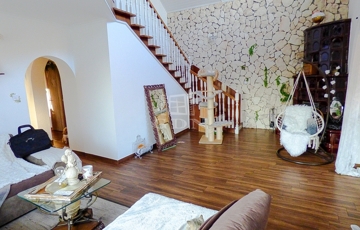 A földszinten egy tágas, nagy belmagasságú (5,4 m), galériázott nappali, hálószoba, étkezős konyha, kamra, wc, fürdőszoba és egy fedett terasz (15 nm) kapott helyet.