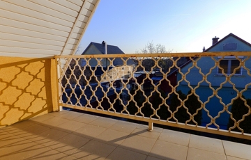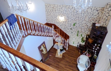 Az emeleten két hálószoba, két loggia (10 nm), fürdőszoba, gardrób és nappali (galéria részen) került kialakításra.