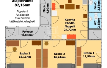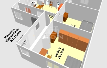 A főépület hasznos alapterülete 82,16nm melyben található: