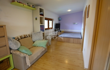 az emeleten négy világos hálószoba kapott helyet, valamint egy zuhanyzós fürdőszoba és egy különálló vizes helyiség is szolgálja a kényelmet. Ugyanitt található a garázs felett kialakított, 60 m²-es beépítésre előkészített tetőtér, amely akár egy külön bejáratú lakássá is átalakítható – ideális többgenerációs együttéléshez vagy irodai funkcióra.