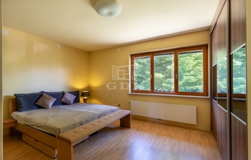 az emeleten négy világos hálószoba kapott helyet, valamint egy zuhanyzós fürdőszoba és egy különálló vizes helyiség is szolgálja a kényelmet. Ugyanitt található a garázs felett kialakított, 60 m²-es beépítésre előkészített tetőtér, amely akár egy külön bejáratú lakássá is átalakítható – ideális többgenerációs együttéléshez vagy irodai funkcióra.