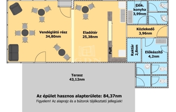 Az épület hasznos alapterülete 84,37nm melyben található: