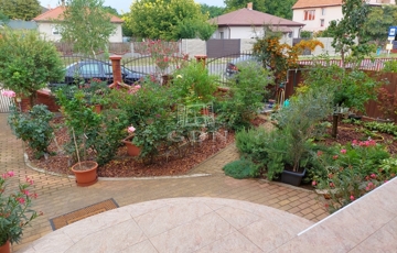 Az épület előtti parkosított udvar tele van virágokkal és díszfákkal. Az épület mögött pedig részben díszfákkal és virágokkal van díszítve, valamint nagy füvesített terület helyezkedik el. Az ingatlan minden oldalról körbe van kerítve, az utcáról pedig kovácsoltvas elemekkel díszített kerítés található.