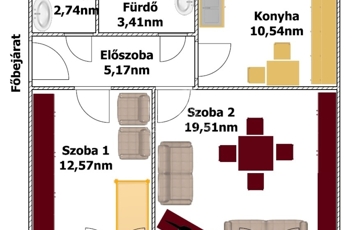 - 2 szoba,
