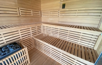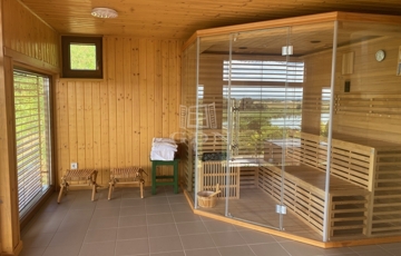 A telken elhelyeztek egy 3000 l nagyságú dézsafürdőt, melyből a csodálatos panorámában gyönyörködhetünk.