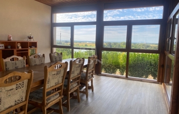 - 100 nm nagyságú téglaépítésű ház. Helyiségei: nappali (29 nm), konyha (4 nm), fürdő (6 nm), szoba (11 nm), étkező-társalgó ( 50 nm).