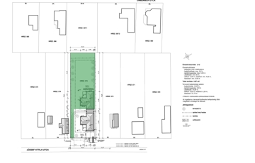 A fedett gépkocsibeálló az utcafronti házhoz tartozik, melynek kizárólagos használatú telekrésze 413 m2. A hátsó háznak 994 m2-es a kizárólagos használatú telekrésze.