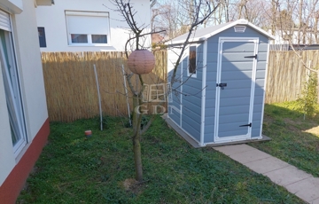 Az előkert részén helyezkedik el egy új kerti szerszámtároló, illetve itt lehet létrehozni egy kis konyhakertet is. A szépen gondozott hátsó kertben fiatal gyümölcsfák találhatók és ezen a területen, szükség esetén a ház további bővítése is lehetséges. A környék kifejezetten csendes, nyugodt kertvárosias. Bár az ingatlan előtt jelenleg még murvával borított út található, de a két szomszédos utca felől aszfaltozott úton közelíthető meg.