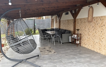 A ház előtt 30 nm nagyságú fedett terasz kapott helyt.