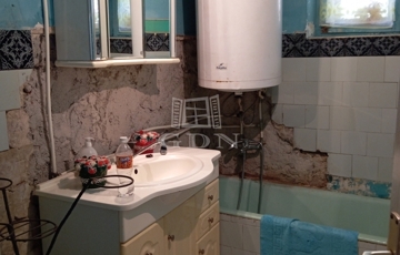 A fürdőszoba még magán viseli egy korábbi csőtörés nyomait, melyet követően a vízvezetékek a közelmúltban cserélve lettek.