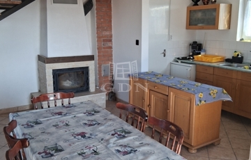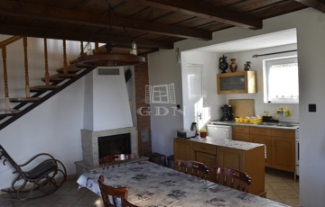 - A középső szinten egy tágas fogadótér vár minket étkezővel, konyhával, kamrával és egy fürdőszobával. A bejárattal szemben egy jól működő, néhány éves kandalló tereli magára a figyelmet.