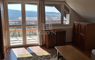 - A felső szinten egy otthonos, napfényes, tágas nappaliból nyílik az erkély, ahonnan csodálatos kilátás tárul elénk. Itt még két félszoba kapott helyett.