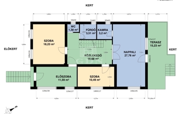 Előkerttel rendelkezik.