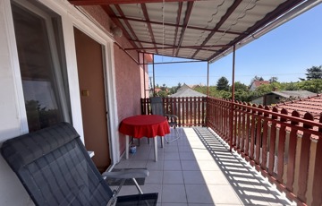 Helyiségek: előszoba, konyha, nappali + étkező, külön wc, fürdőszoba, emeleten 2 külön szoba, fürdő + wc, előtér, erkély