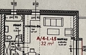 - francia erkély : 1 nm ( nem teljesértékű erkély)