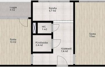 Eladó Óbudán egy 48 nm-es, 2 szobás panellakás beépített loggiával.