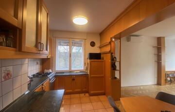 A lakás amerikai konyhás nappalival rendelkezik, ahol a konyha kissé elszeparált. A konyha beépített bútorokkal és gépekkel felszerelt: gáztűzhely sütővel, új mosogatógép, hűtő, mikrohullámú sütő áll rendelkezésre.
