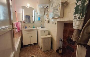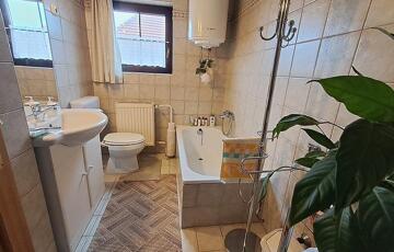 A burkolatok mindkét részben szép állapotban vannak. A ház alatt van egy 50 m2-es pince, ami jelenleg szerelőműhelyként funkcionál, a kertben pedig egy 2 szerelőaknás garázs is rendelkezésre áll.