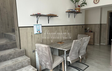 Nyíregyháza, Borbányán szép aszfaltozott utcában eladó egy tehermentes újszerű állapotú ikerház a 121 m2-s, három különnyíló szobás, nappalis, gardrob, konyha+étkezős, kamra, fürdőszoba külön wc, zuhany+wc felszereltségű, műanyag nyílászárós mely két ablak kivételével redőnyözött és egyedi gázfűtésű. Az ingatlanak kétlakásos ikerház besorolása van de nincs osztatlan közös területe. A ház 2008-ba épült porotherm 30-s téglából, külsőleg 12,5 cm-s nikecel szigetelés borítja, beton födémes a tető betoncseréppel fedett, telekterület 250 m2-s, kiépített öntöző rendszer található a kertben. Hozzá tartozik a beépített gépesített konyhabútor a hűtő-fűtő klíma, udvarban fedett gépkocsibeálló. A bejárat térkövezett a kerítés kovácsolt vas elemekkel kiegészített. Birtokba adás megbeszélés tárgya.