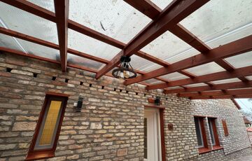 - vastag falainak és szélvédett elhelyezkedésének köszönhetően a ház hőháztartása télen-nyáron rendkívül kedvező,