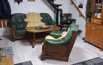 Az alsó szinten nappali, konyha, fürdő (WC-vel), spájz található. Az emeleten 2 szoba, előtér, mosdó wc-vel. Az épület fűtése vízteres öntvény látványkandallóval és radiátorokkal került kialakításra; továbbá 1-1 inverteres hűtő-fűtő klíma található az alsó és a felső szinten is. Az épülettel egybeépítve egy távirányítós kapuval ellátott 24 nm-es garázs is tartozik az ingatlanhoz. A garázs egyben műhelyként van berendezve értékes szerszámokkal (köszörűgép, oszlopos fúrógép, inverteres hegesztő, kéziszerszámok, Scheppack 8t rönkhasító stb.).