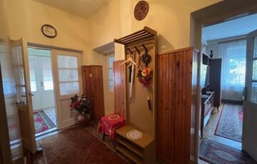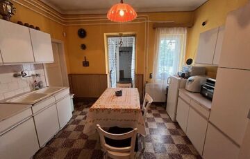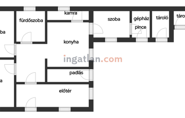 Elosztása: előszoba, közlekedő, 3 külön bejáratú szoba, konyha,spejz, fürdőszoba,kazánház.