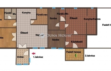 -kialakítása: 2 szoba, előszoba, konyha+étkező, kamra, fürdő+wc, gardrób.