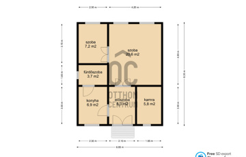 - 2 szoba, konyha, fürdőszoba, előszoba és kamra helyiségekkel rendelkezik. Elrendezése könnyen változtatható. Átalakítással akár a felette lévő tetőtér is beépíthető.