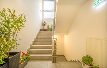 A lakás egy csendes, családias, kis lakásszámú (15 lakásos) társasház első emeletén található, rendezett lakóközösséggel, pár perc sétára a Dunaparttól.