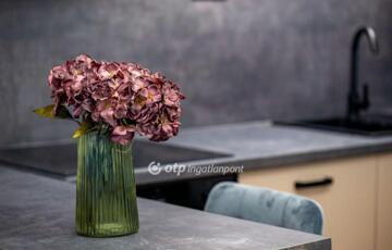A vételár tartalmazza a gépesített konyhát és a lakás teljes berendezését, a kiegészítőkkel együtt, így akár azonnal költözhető vagy kiadható.