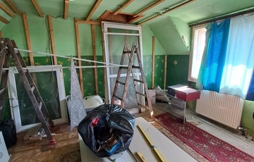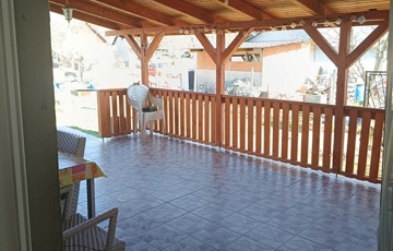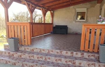 A ház kisebbik része 1980-ban épült beton alapra téglából, majd 2017-ben hozzá lett építve beton alapra könnyűszerkezetből, mely 10 cm-es szigetelést kapott. Ekkor a régebbi rész is – itt található a konyha – teljesen fel lett újítva, alatta 20 m2-es pince van. A bejárati ajtó előtt egy 35 m2-es fedett terasz is lett építve.