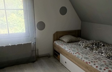 Az ingatlan lakóterülete 156 m2, melyben a földszint 86 m2, itt konyha-étkező, nappali, 1 szoba, fürdőszoba és WC lett kialakítva, a tetőtérben – mely 70 m2, nappali, és 3 szoba található. A tetőtérben 1 szoba még nem lett befejezve, a gipszkartonok, műanyag nyílászárók megvannak, csak be kell építeni.