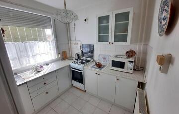 Az ingatlan elosztása praktikus: egy tágas nappali, két szoba, ablakos konyha és egy kamra található benne. A fürdőszoba (zuhanyzós) és a WC külön helyiségben kapott helyet. A lakás műszakilag karbantartott: a nyílászárók modern műanyagra lettek cserélve, a fűtésről lapradiátorok gondoskodnak. A szobák laminált parkettásak, a vizesblokkok burkolatai normál állapotúak. Tehermentes.